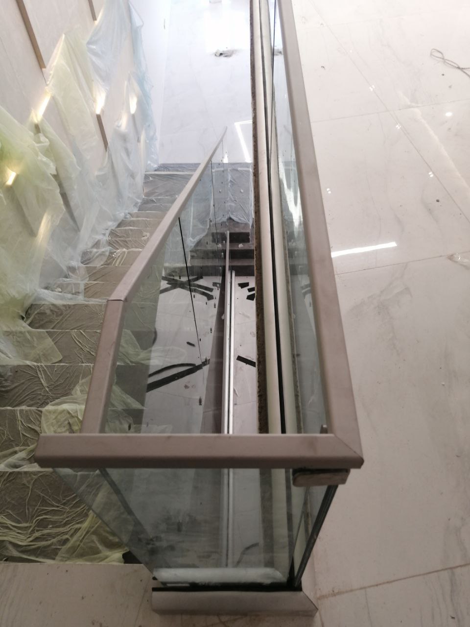 شیشه نرده داخل این پروفیل قرار میگیرد و با گوه، بست و کاور نهایی فیکس میشود.